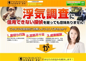 「街角相談所-探偵-」です。ネットで申し込むと複数の探偵事務所から見積もりがもらえるので、比較していちばん安い探偵事務所に依頼できます。